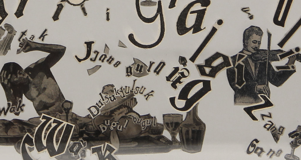 2014 / Illustration and lettering of magazine, paste, frame, acrylic sheet, glass / Translation in Korean, German / 26×32,1×3,5 cm