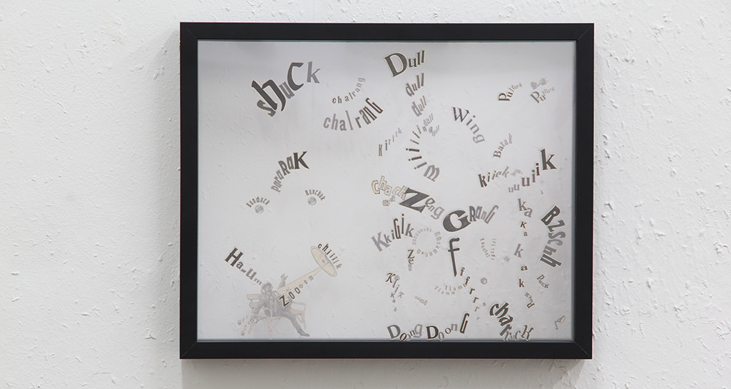 2014 / Illustration and lettering of magazine, paste, frame, acrylic board, glass / Translation in German, Italian, Greek / 22,3 x 31,2 x 3 cm