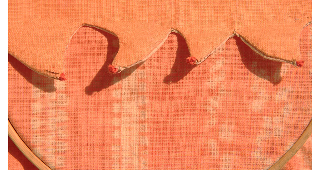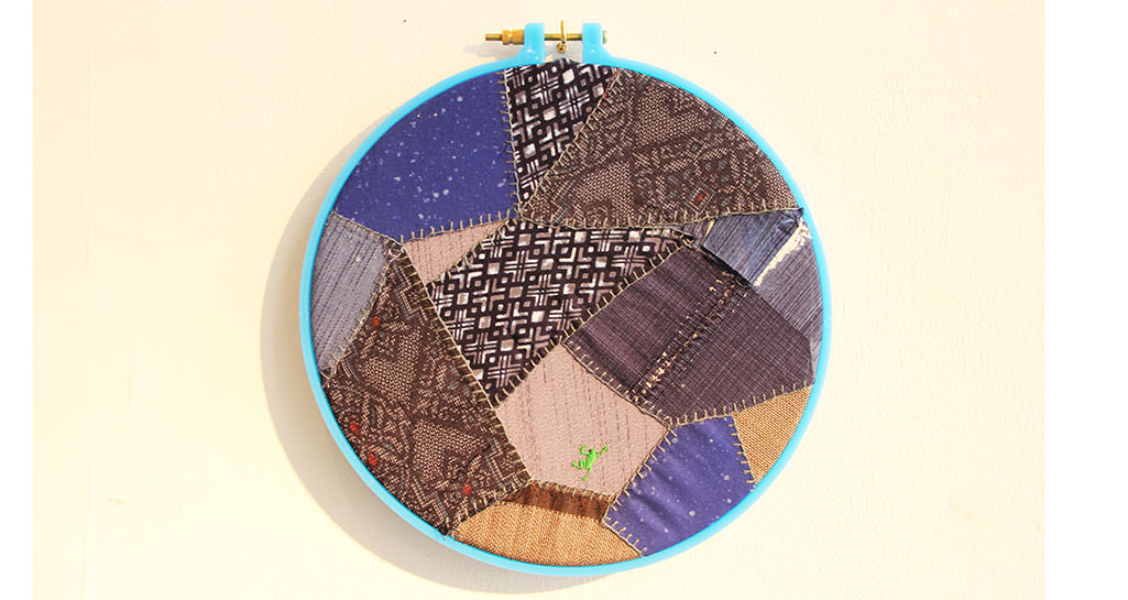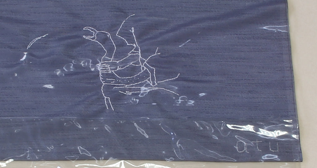 Cloth, embroidery thread, rivet / 71 x 34 cm