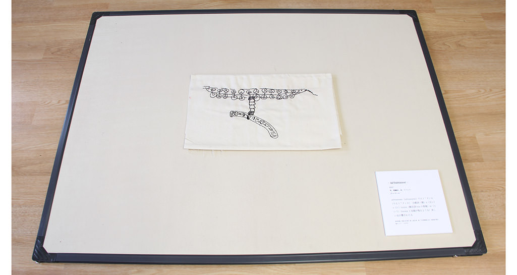 Cloth, embroidery thread, thread, rivet / 74 x 21 cm