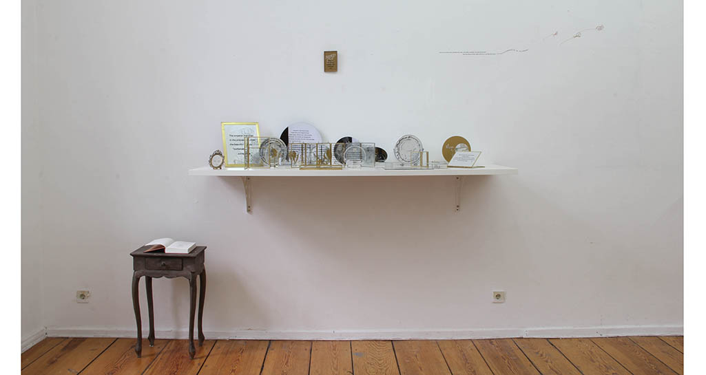 2018 / Glass, mirror, frame, vinyl film, wire / dimensions variable / 22pieces