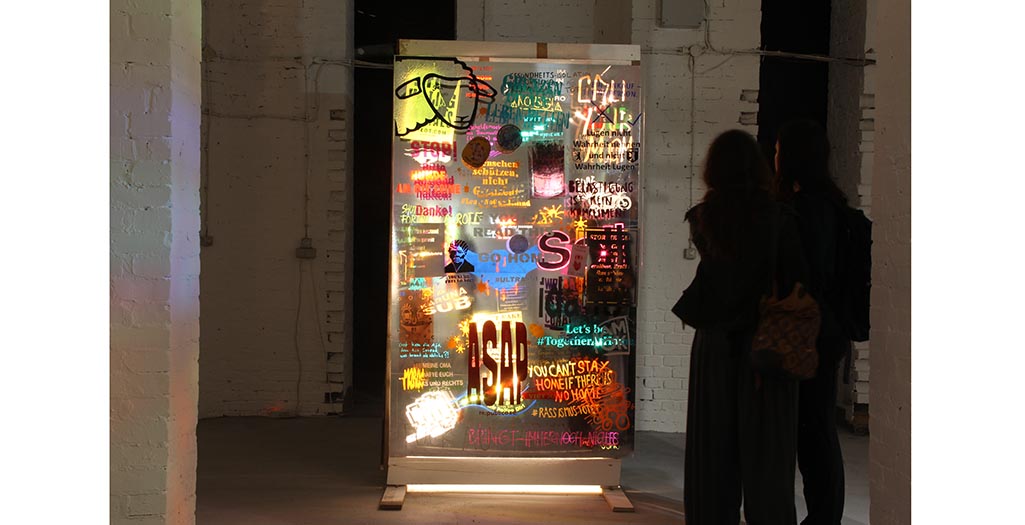 2020 / Acrylic sheet, vinyl film, printed on paper, marker pen, inkjet film / 2 pieces, 200x 125 cm each